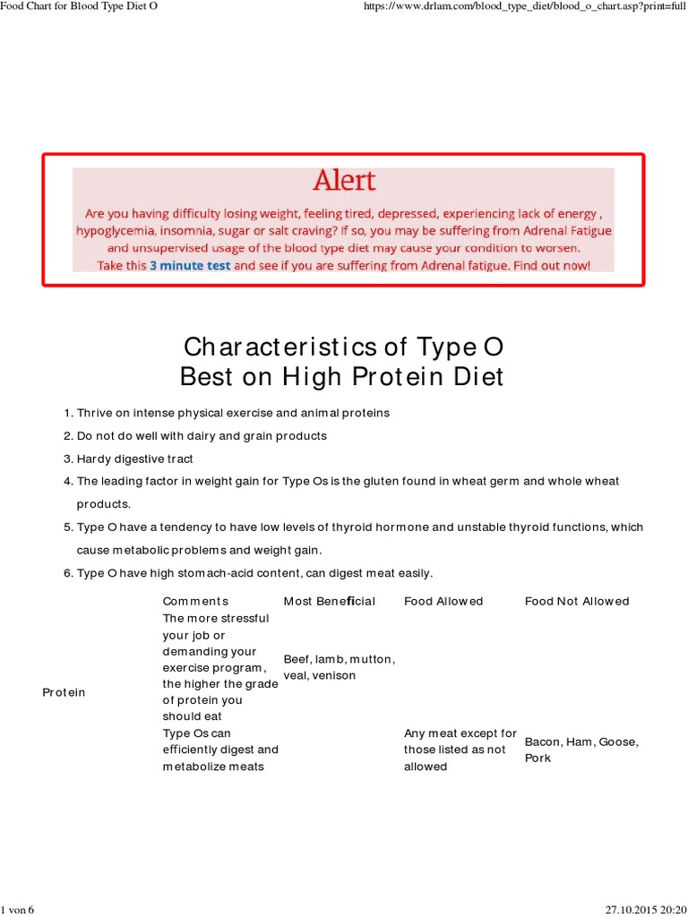 Blood Type O Diet Food Chart - The blood type diets are fad diets advocated by several authors, the most prominent of whom is peter j.